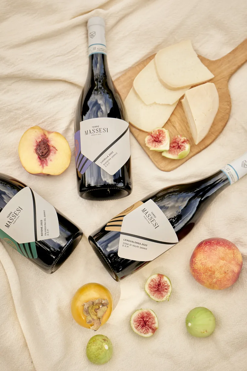 Das Weingut, Società Agricola Terre di Leone in Massa di Faicchio / Kampanien wird in der dritten Generation von den Brüdern und Cousins Alessio, Davide, Giovanni di Leone betrieben. Tief mit der Region verwurzelt legen sie großen Wert darauf, den Weinbau streng im Takt mit der Natur zu betreiben. So bieten sie ihre Weine unter „Terre Massesi“ an, mit Anspielung auf das dortige Land, das von vulkanischen Böden verbunden mit Kalkstein geprägt ist.