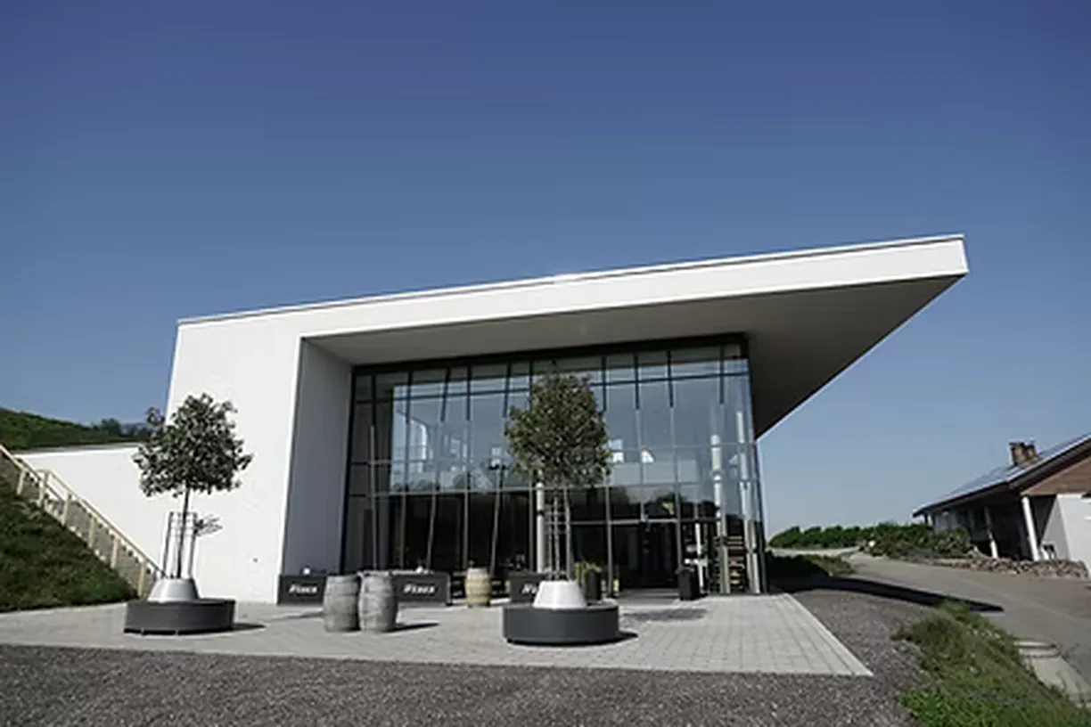 Man fährt die Straße am betriebseigenen Walnussgarten (dem größten in Süddeutschland) hoch und weiß nicht genau was einen erwartet. Dann sieht man mit jedem Meter ein Stückchen mehr vom Weingut. Viel Glas, gerade Linien, klare Konturen, einladende Durchlässigkeit in der Architektur, faszinierende Ein- und Ausblicke in die verschiedenen Produktionsbereiche im Weinkeller ebenso wie in die abwechslungsreiche Natur drumherum. Eine vollkommene gläserne Produktion – von der Traube bis zum Abfüllen. Alle Verarbeitungsschritte, ob Pressen, Gärung, Reife oder Abfüllung finden auf einer Ebene statt. Schonender kann man Wein nicht herstellen.