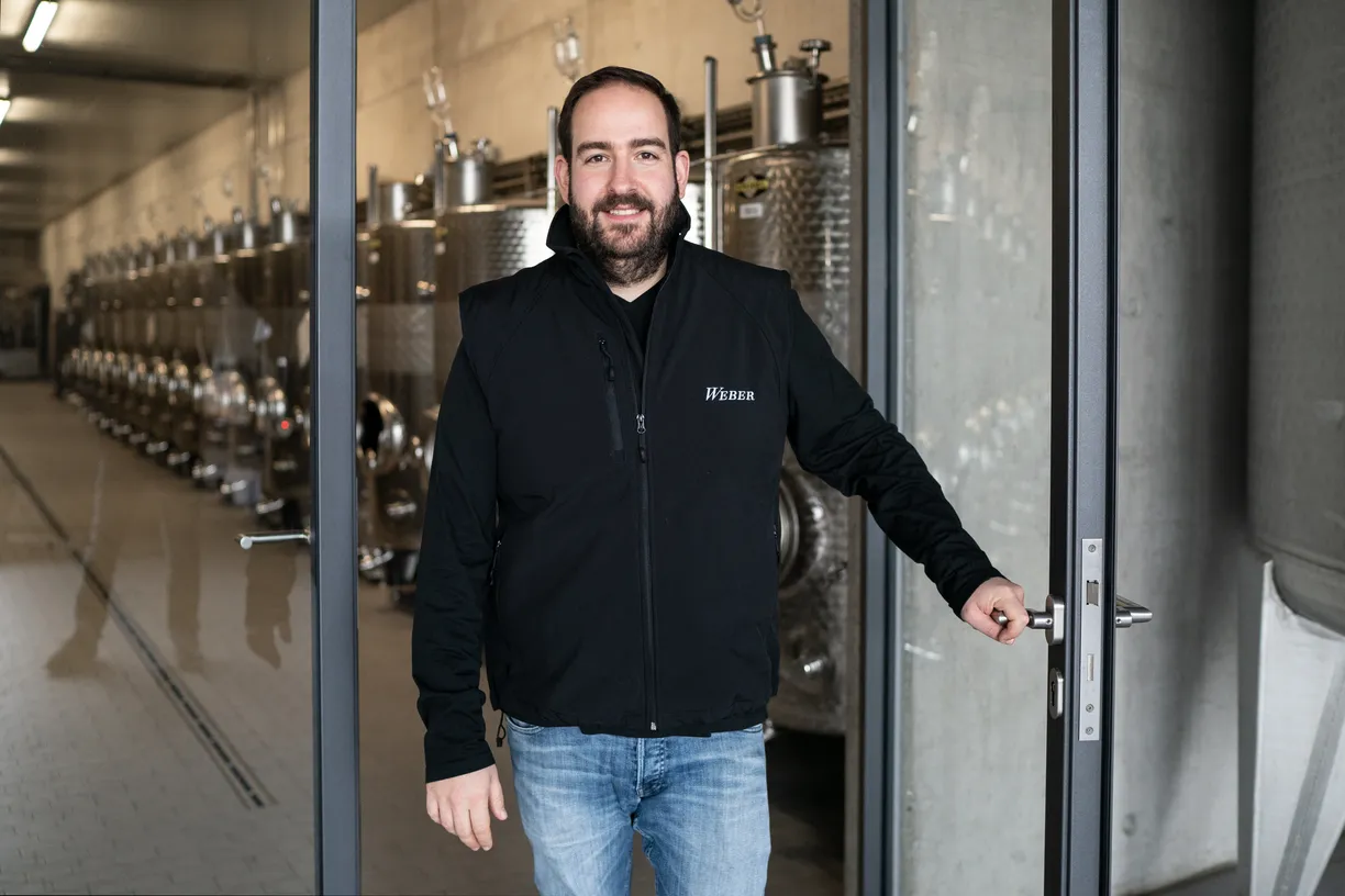 Wenn man sich die Etikettengestaltung der Weine anschaut, wenn man die mit Preisen ausgezeichnete Vinothek anschaut und wenn man die Weine der Webers probiert, hat man das Gefühl: Alles aus einem Guss. Stimmig von Angang bis zum Ende. Schnörkellos und gradlinig. „Unsere Weine sind das zu Flüssigkeit verdichtete Ergebnis all unserer Arbeit“, so die Aussage von Michael Weber. „Sie sind keine Zufallsprodukte, sondern tragen ganz klar unsere Handschrift und transportieren damit auch ein Stück von uns selbst“. Weinstilistik modern und zeitgemäß. Trinkspaß. Charmant und unverkrampft. Dabei stets individuell und nicht marktkonform glattgebügelt. Transparenz pur. So wird der Sortencharakter deutlich. In dieser Art Weine auszubauen, zeigt sich auch das Selbstbewusstsein und das Vertrauen in die handwerklichen Fähigkeiten. Mit diesen Gedanken im Hinterkopf erklärt sich auch der Sinn dieser gradlinigen Architektur des Weinguts.