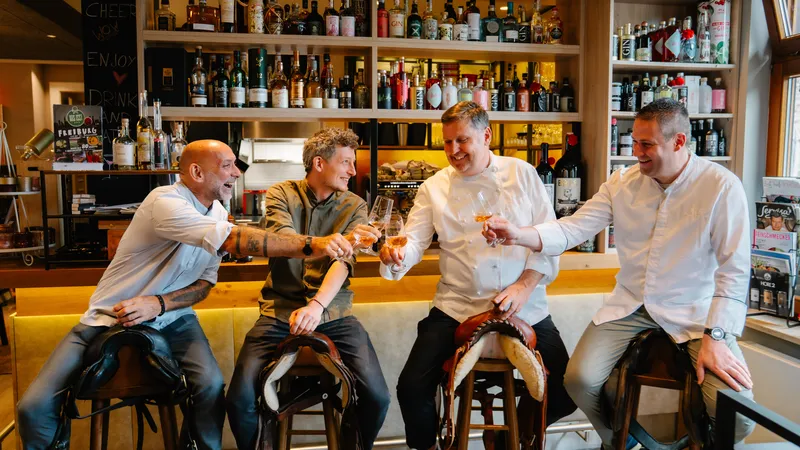 In Merkles Restaurant in Endingen wo vier Sterneköche mit ihrer Küchenparty einen wahren Gaumenschmaus zaubern: Thomas Merkle, Christian Baur (Schwarzer Adler, Vogtsburg), Martin Fauster (Wolfshöhle, Freiburg) sowie Christoph Kaiser (Jacobi, Freiburg).